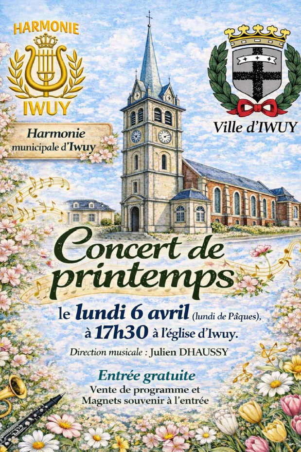 Lundi 06 avril 2026 : Concert de Printemps présenté par l'Harmonie Municipale d'IWUY