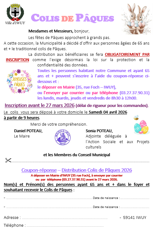 Inscriptions - Colis de Pâques 2026 - Avant le 27 mars 2026