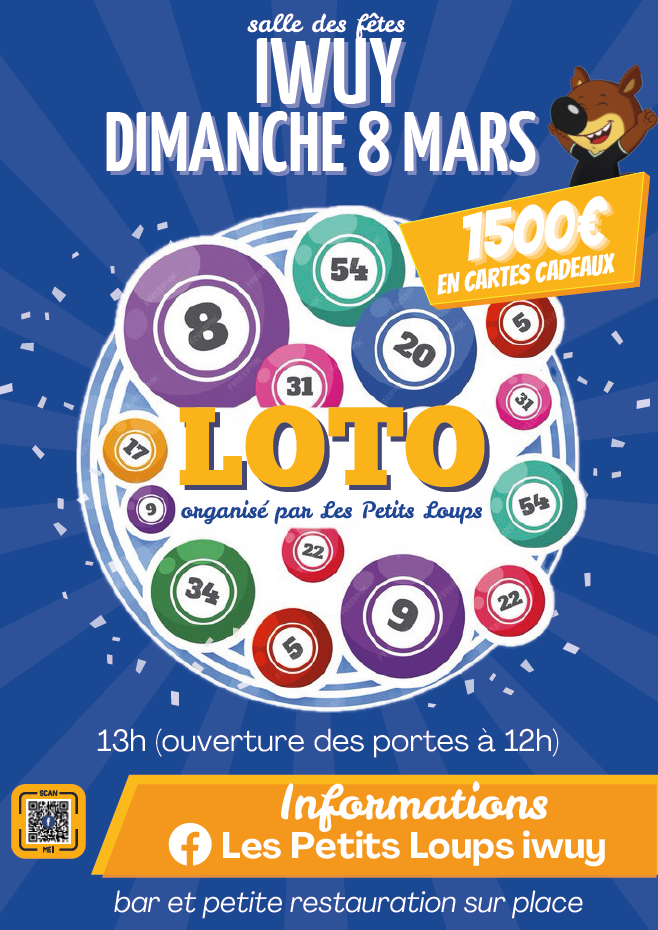 Dimanche 08 mars 2026 : Loto organisé par l'APE Les Petits Loups